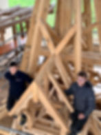 Youn Le Meil et Hugo Garel aspirant charpentier devant leur oeuvre compagnonnique